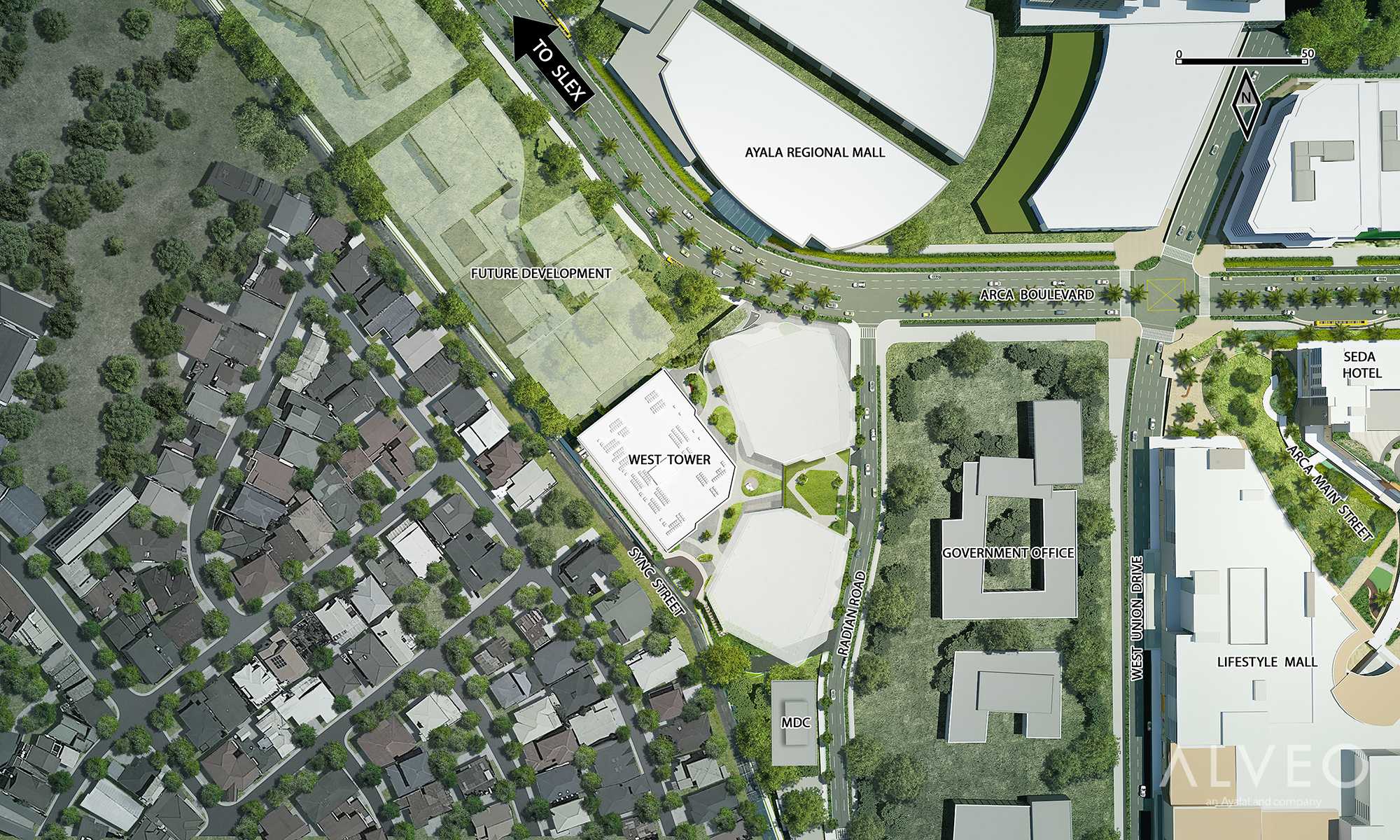 Located at the east portion of Arca South, Arbor Lanes intertwines nature and architecture in a vast 34,315-sqm development with commercial buildings to its north, residential communities to the west, and its main entrance to the east.