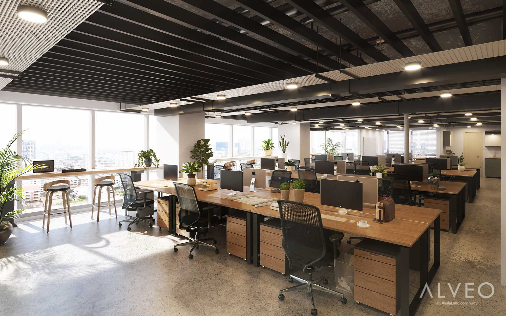 - Bare and plain cement finish on ceiling